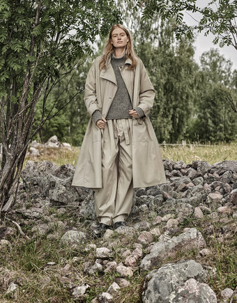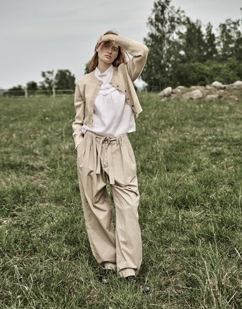 Soft dense cotton 96% elastane 4%. Our garments are pre-washed and tumble dried for a relaxed leisure look. Always wash inside out and with washing detergent without bleach. This cotton-elastane fabric is sourced from Italy.