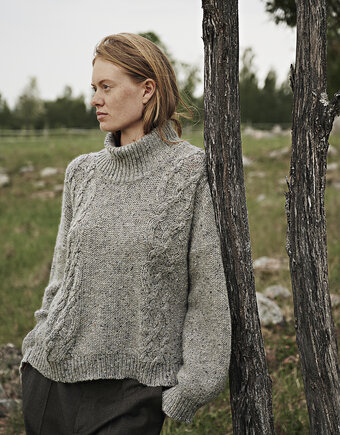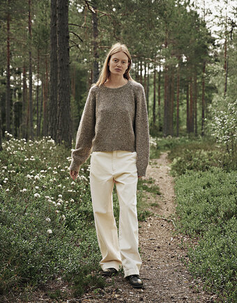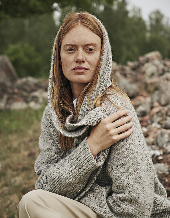 Soft mohair tweed wool with a homespun hand feel and look in colours inspired by the nature. Contrasting neps and slubs are important characters of this unique yarn known as "the Genuine Donegal tweed".The yarn has been spun in the County of Donegal, Ireland since the beginning of 1900 and is known worldwide. The raw wool material is from New Zealand and Norway and certified according to Woolmark standards.