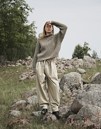 100% undyed wool, Pure new 100% British wool in shades of the sheep’s natural colour, without any dyeing process, knitted in brioche stitch. The wool fibers breathe and transport moisture away from the body. It also has natural antibacterial qualities which keep it from smelling, and it cleans itself in fresh air. Wool is perfect for layering. Wear our jerseys beneath our knitwear, and our knitwear beneath our Harris Tweed, and it will keep you warm.
