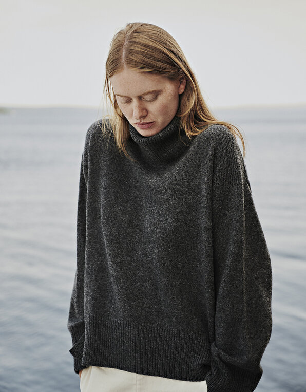 100% wool knitwear, Extra soft Woolmark-certified Shetland wool in colours inspired by the nature. The wool fibres breathe and transport moisture away from your body. It also has natural anti-bacterial qualities which keeps it from smelling and it cleans itself hanging outdoors in fresh air. Wool is perfect for layering. Use our jerseys beneath our knitwear, our knitwear beneath our Harris Tweed, and it will keep you warm.