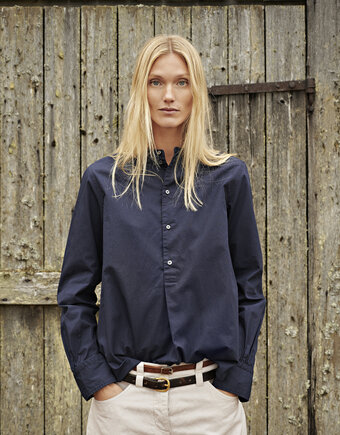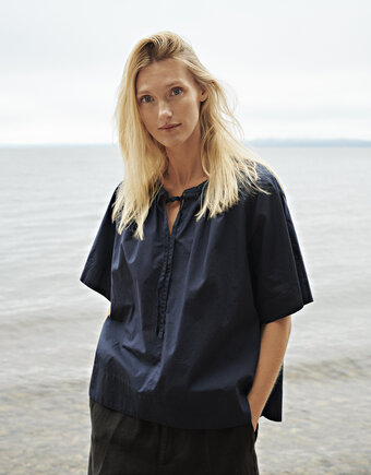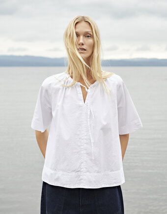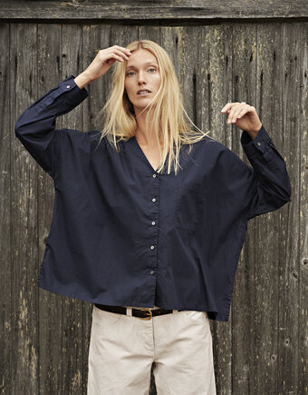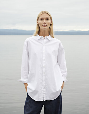 100% organic cotton. Crisp and breathable poplin made from 100% GOTS-certified organic cotton. Smooth surface with a light, structured feel that softens beautifully over time. Our garments are pre-washed and tumble dried for a relaxed leisure look.