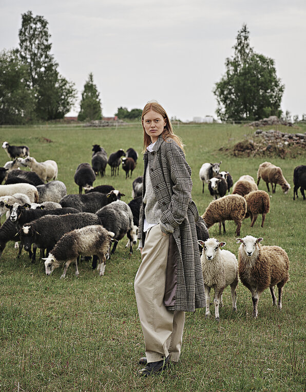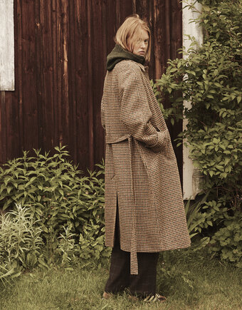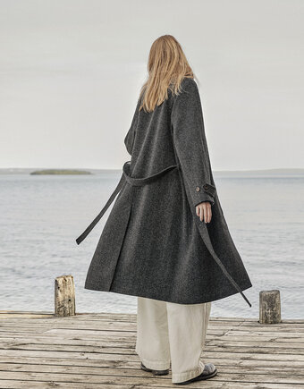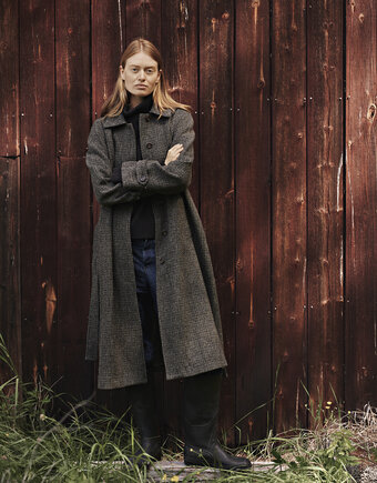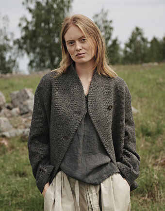100% wool, Harris Tweed. Handwoven Harris Tweed from the islands of the Outer Hebrides. The historical Orb label inside each garment guarantees “the highest quality tweed, dyed, spun and handwoven by islanders of the Outer Hebrides of Scotland in their homes to the laws outlined in the Harris Tweed Act of Parliament.” Since the very first nygardsanna collection we have been using Harris Tweed, the “Rolls Royce” of all wool materials, for our coats and jackets. The material will last a lifetime and will become almost windproof by use and wear in bad weather. Please be aware that there is no lining material that lasts as long as Harris Tweed, but it will always be a good investment to repair or replace broken lining in your garment.